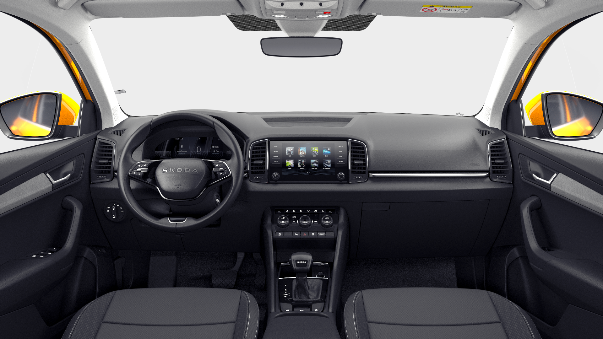 - Sluneční clony s osvětleným kosmetickým zrcátkem na straně řidiče a spolujezdce