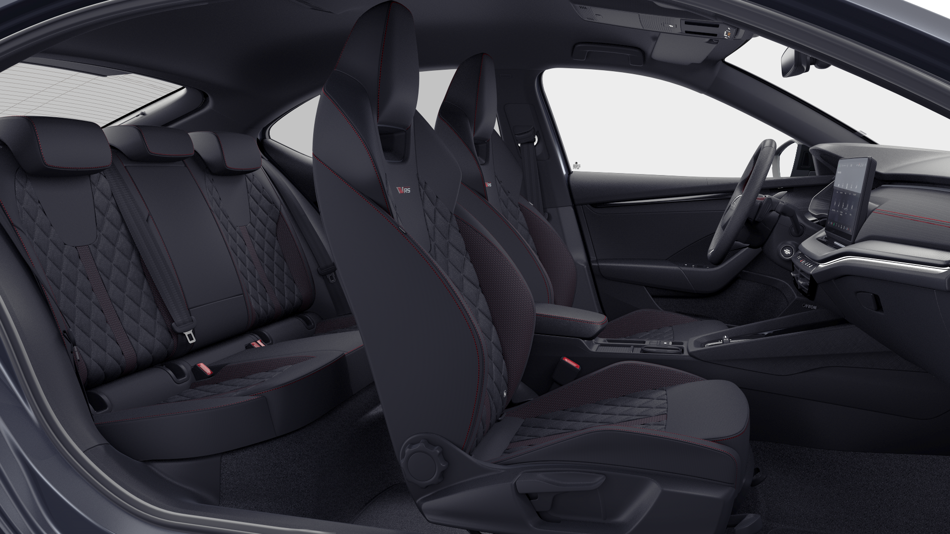 - Integrované hlavové opěrky sportovních předních sedadel