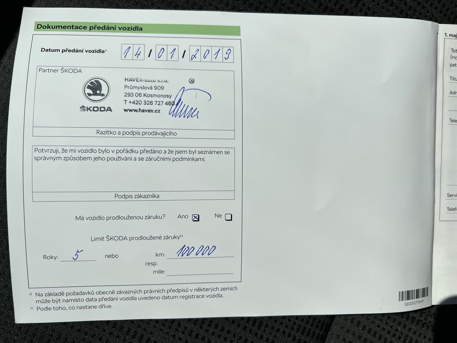 - Záruka: Prodloužená záruka na 5 let nebo 100.000 km, 12 let záruka na prorezavění karoserie vozu, 3 roky záruka na vady lak, Doživotní záruka mobility