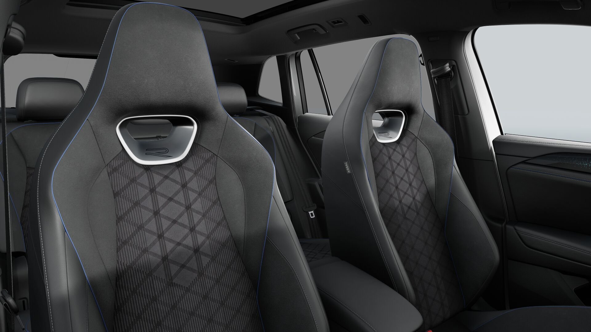 - s integrovanými hlavovými opěrkami a označením "R"